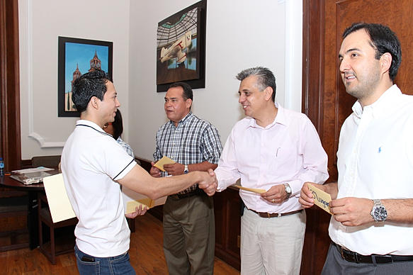 El presidente Municipal de Lerdo, Luis De Villa Barrera entregó los premios económicos a los ganadores de los tres primeros lugares en las distintas categorías del concurso de Oratoria y Debate Público.